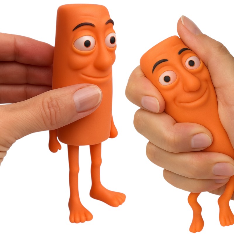 Odkryj gniotek antystresowy Tung Tung Sahur o wysokości 10 cm, wypełniony plastycznym piaskiem. Idealny do relaksu i zabawy, w przyciągającym wzrok pomarańczowym kolorze.