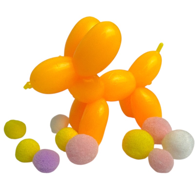 Przedstawiamy uroczy gniotek w kształcie pieska, który z pewnością wywoła uśmiech na twarzy każdego. Ten kolorowy balonik z pomponikami to doskonała zabawka antystresowa, która nie tylko bawi, ale także pomaga się zrelaksować.