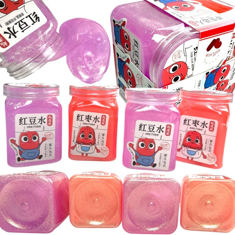 Brokatowe wykończenie daje efekt glamour, a pastelowe kolory pasują do dekoracji na przyjęcia, wieczory panieńskie i dziecięce urodziny. Slime można rozciągać, ugniatać i formować, co pomaga się wyciszyć i zająć ręce.